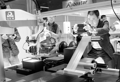 现场专业观众用手机为李群自动化创新产品录像(图片来源:科技日报)
