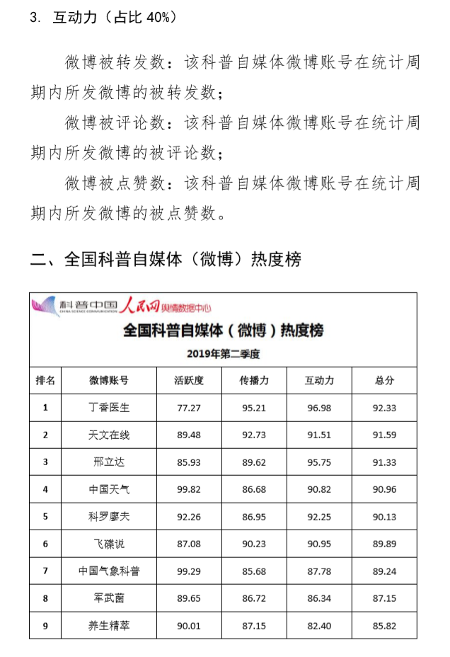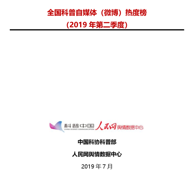 2019年第二季度全国科普自媒体(微博)热度榜发布