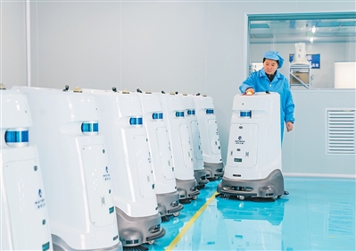 山西省运城市临猗县的一家智能科技公司生产车间内,工人在检测智能机器人产品性能。 |